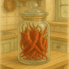 Once dry, tuck your chillies into an airtight jar or container — glass is especially lovely. But don’t abandon them just yet! For the first week, give the container a gentle shake each day. This little tumble helps any lingering moisture distribute evenly, warding off the dreadful doom of mould.