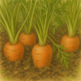 Carrots are the tender, sun-kissed daydream of the vegetable patch—a quiet little promise of sweetness, rooted deep in earth and waiting for their moment of glory. Below the surface, tapered, rosy roots stretch and glow, ready to be lifted like buried treasure and tumbled into soups, purees, or crisp salads. Their feathery green tops dance above the ground, soft and lacy, perfect for snipping into herb butter or tucking into a garden-fresh bouquet.